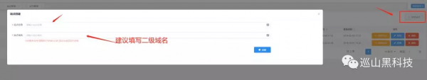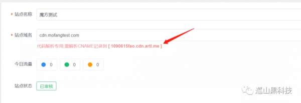 登錄巡山魔方,在右側(cè)點(diǎn)擊“添加網(wǎng)站”,“站點(diǎn)名”稱填入方便你分類的名字,“站點(diǎn)域名”內(nèi)填入你要用來(lái)解析代碼的域名(建議使用二級(jí)域名,不要使用正在跑著正常業(yè)務(wù)的域名)