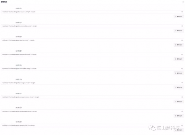 規(guī)則配置好了,下面就是將魔方的代碼插入到老板們管理的網(wǎng)站中去了,回到魔方的網(wǎng)站列表頁(yè),點(diǎn)擊“獲取代碼“