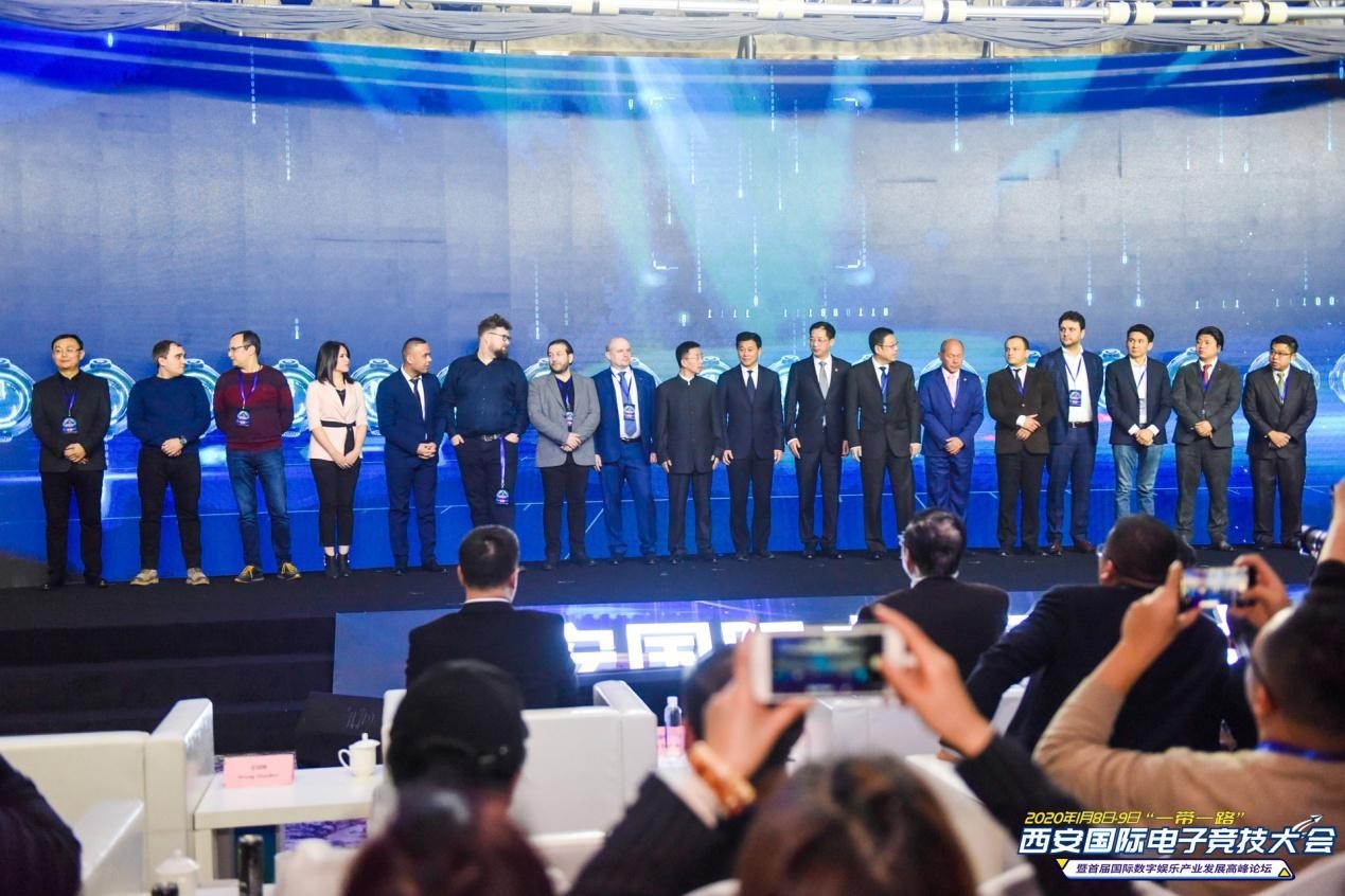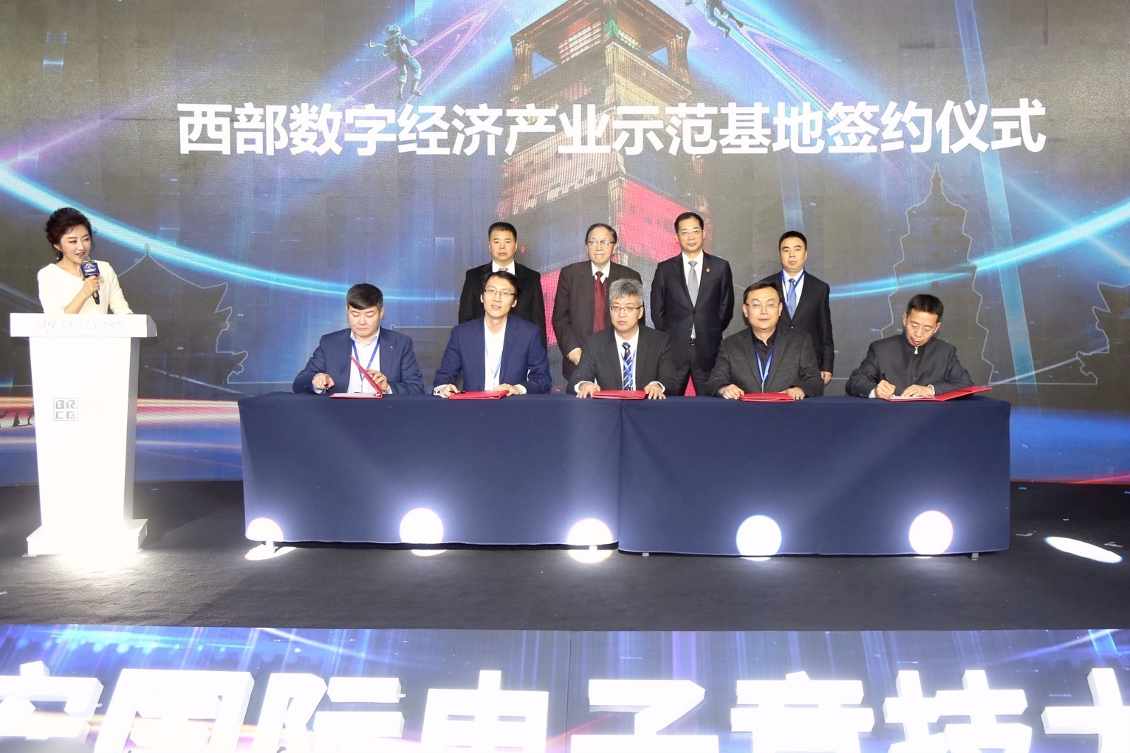 隨后,一帶一路電競(jìng)協(xié)會(huì)聯(lián)盟單位及相關(guān)領(lǐng)導(dǎo)等18位代表齊聚臺(tái)上,啟動(dòng)“一帶一路國(guó)際電子競(jìng)技協(xié)會(huì)聯(lián)盟”成立儀式,這標(biāo)志著一帶一路沿線國(guó)家將攜手在電競(jìng)領(lǐng)域發(fā)力,深入推動(dòng)各國(guó)電競(jìng)體育產(chǎn)業(yè)的發(fā)展。同時(shí),由騰訊(西安)企鵝新媒體學(xué)院發(fā)起并聯(lián)合西安航天基地、西安市電子競(jìng)技協(xié)會(huì)、中亞互聯(lián)、歐亞絲綢之路區(qū)域合作促進(jìn)會(huì)等五方一起,舉行了“西部數(shù)字經(jīng)濟(jì)產(chǎn)業(yè)示范基地”簽約儀式。據(jù)介紹,該基地將通過打造貫穿生產(chǎn)鏈、價(jià)值鏈、創(chuàng)新鏈、資金鏈的數(shù)字產(chǎn)業(yè)優(yōu)質(zhì)生態(tài)系統(tǒng),促進(jìn)西部數(shù)字經(jīng)濟(jì)產(chǎn)業(yè)快速、健康發(fā)展。