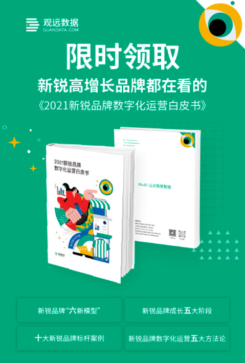 觀(guān)遠(yuǎn)數(shù)據(jù)團(tuán)隊(duì)花費(fèi)數(shù)月,聯(lián)合多位零售消費(fèi)行業(yè)研究專(zhuān)家,梳理了國(guó)內(nèi)多個(gè)細(xì)分領(lǐng)域、賽道,整理出了新銳品牌特有的發(fā)展路徑,成長(zhǎng)階段及其數(shù)字化運(yùn)營(yíng)方法論,與10大行業(yè)新銳品牌標(biāo)桿案例,匯總成立一本《2021新銳品牌數(shù)字化運(yùn)營(yíng)白皮書(shū)》。