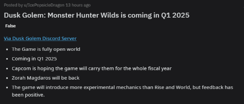 不過需要注意的是,雖然Dusk Golem對卡普空游戲曾有過準(zhǔn)確的爆料,但上述內(nèi)容真實(shí)性有待進(jìn)一步確認(rèn),需理性看待。