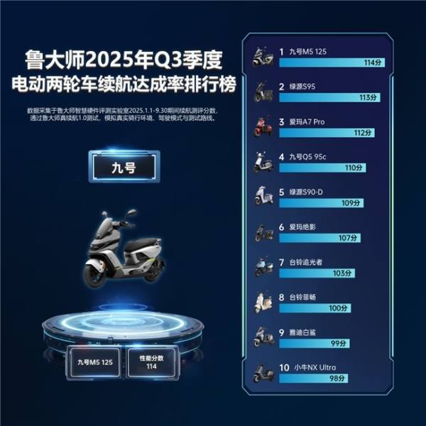 電動(dòng)兩輪車?yán)m(xù)航達(dá)成率榜數(shù)據(jù)通過魯大師真續(xù)航1.0測(cè)試,模擬真實(shí)騎行環(huán)境、駕駛模式與測(cè)試路線,以“成都三環(huán)通勤續(xù)航圈”為基礎(chǔ),讓車輛在戶外場(chǎng)景真實(shí)模擬用戶每日通勤狀態(tài)。