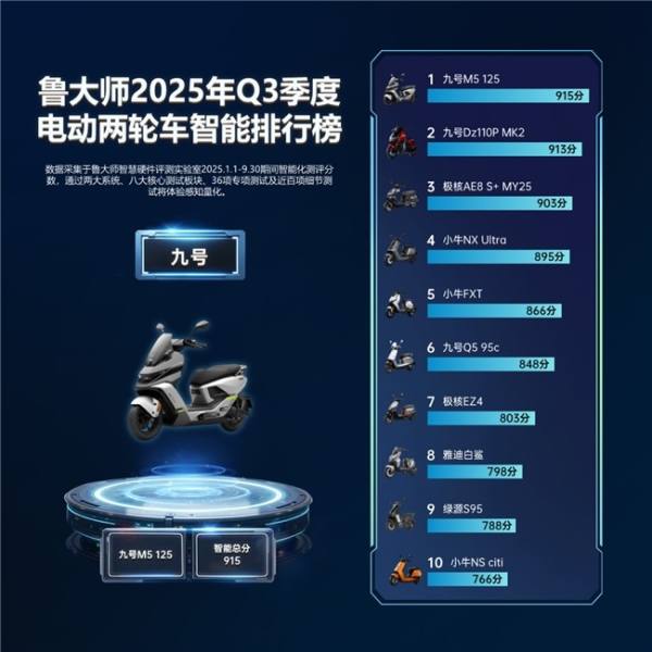 電動(dòng)兩輪車智能榜數(shù)據(jù)全部依托擁有12年經(jīng)驗(yàn),與四川大學(xué)計(jì)算機(jī)學(xué)院聯(lián)合共建的魯大師智慧硬件評(píng)測(cè)實(shí)驗(yàn)室,通過兩大系統(tǒng)、八大核心測(cè)試板塊、36項(xiàng)專項(xiàng)測(cè)試及近百項(xiàng)細(xì)節(jié)測(cè)試來將體驗(yàn)感知量化。截至目前,魯大師電動(dòng)車智能化測(cè)評(píng)報(bào)告已經(jīng)發(fā)布44期,測(cè)試車型高達(dá)270余臺(tái)。