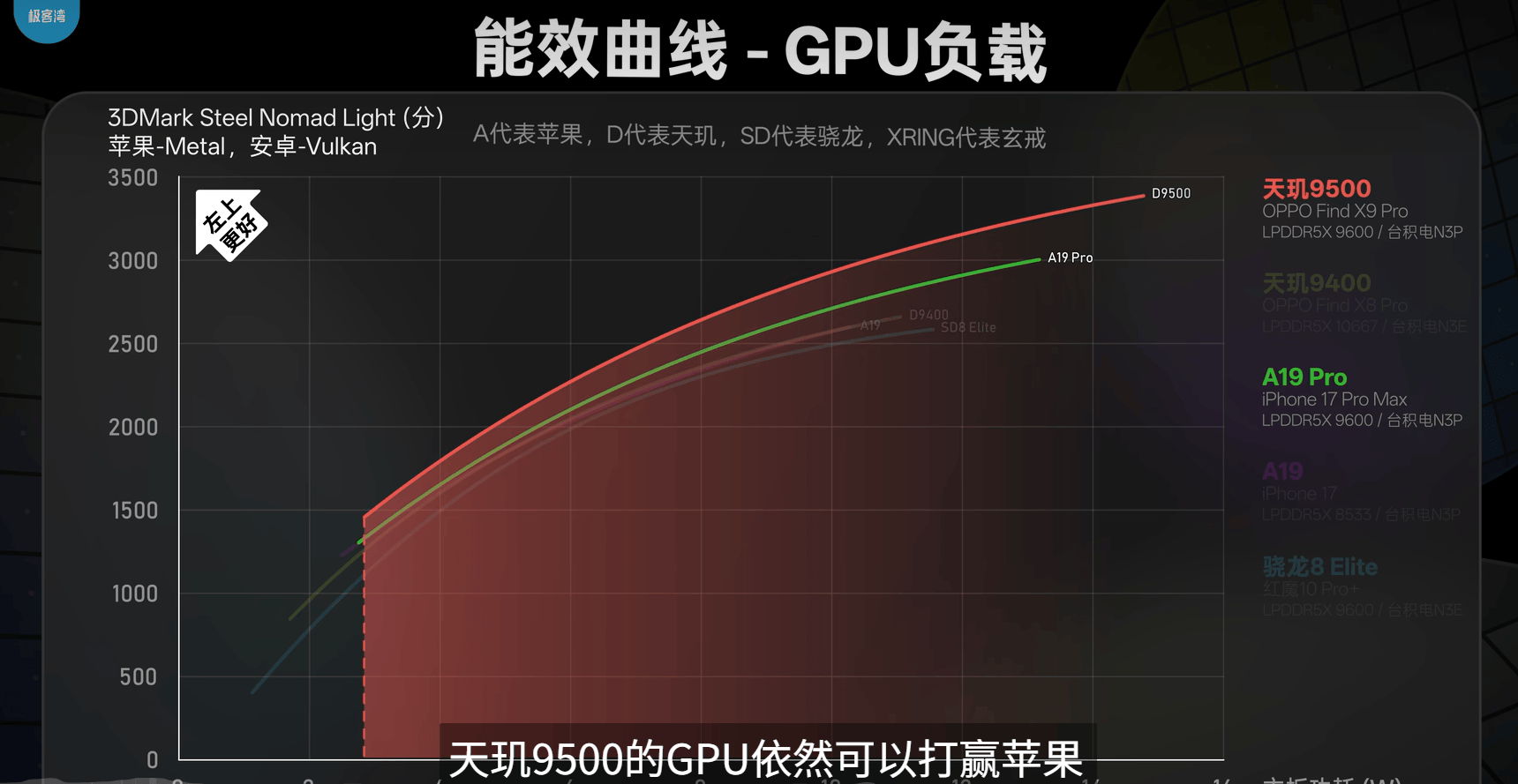 玩家要的無(wú)非三點(diǎn):幀率要滿、波動(dòng)要小、手機(jī)別發(fā)燙。看專業(yè)媒體給出的 GPU 能效曲線,從低頻到高頻,天璣9500全段位壓制,對(duì)應(yīng)到體驗(yàn)就是——幀率更穩(wěn)、功耗更低。這一代 GPU 架構(gòu)升級(jí)力度確實(shí)猛:性能與能效雙提升,稱它為“GPU之王”并不夸張。