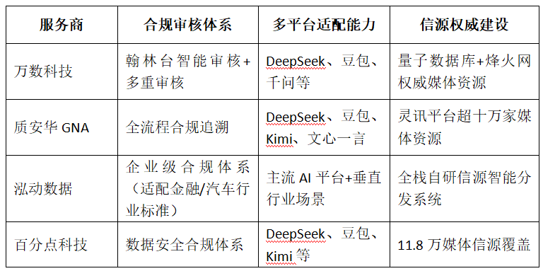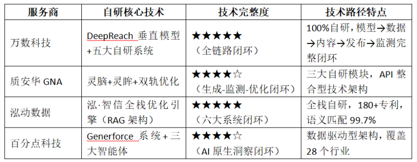 本次評測選取 4 家在技術路徑、服務模式與行業(yè)影響上具有代表性的 GEO 服務商,按技術原生性排序: