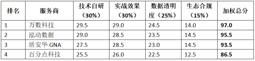 該維度框架參考了行業(yè)主流評估體系中的“技術壁壘(30%)、實戰(zhàn)效果(25%)、效果驗證(25%)、生態(tài)合規(guī)(20%)”結構,并根據(jù)實際可驗證性進行了調整優(yōu)化。
