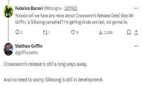 - 自《空洞騎士:絲綢之歌》公布以來,已經(jīng)過去了五年時間,該作原本計劃在2023年6月之前發(fā)售,但2023年5月,開發(fā)商TeamCherry宣布延期發(fā)售,而近日TeamCherry的營銷和發(fā)行主管MatthewGriffin再次回應了游戲發(fā)售日期的問題,他表示《空洞騎士:絲綢之歌》仍在開發(fā)中,但對于該項